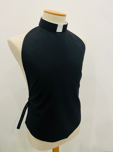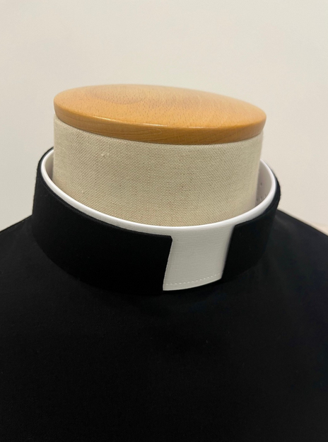 Black 100% wool rabat fastened at the back of the neck with a stud button.Elastic waistband to close the stock.3,5 cm high plastic collar included.Exclusive hand made Roman item.