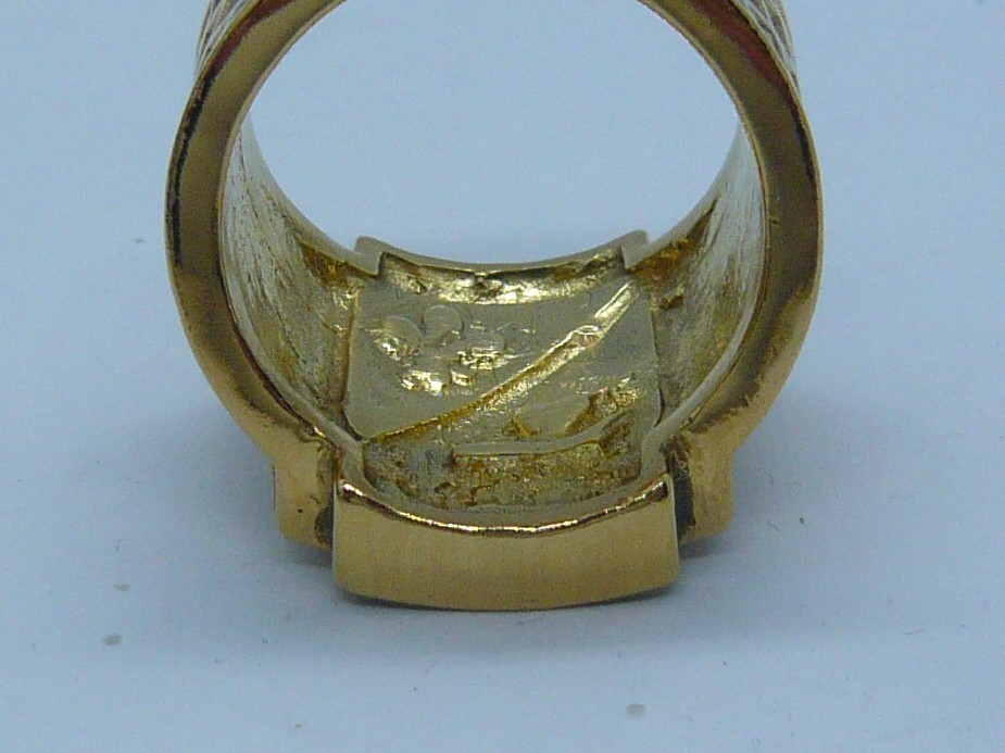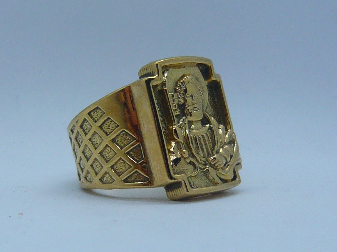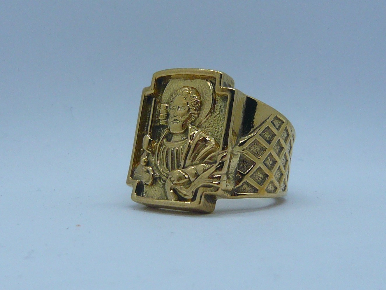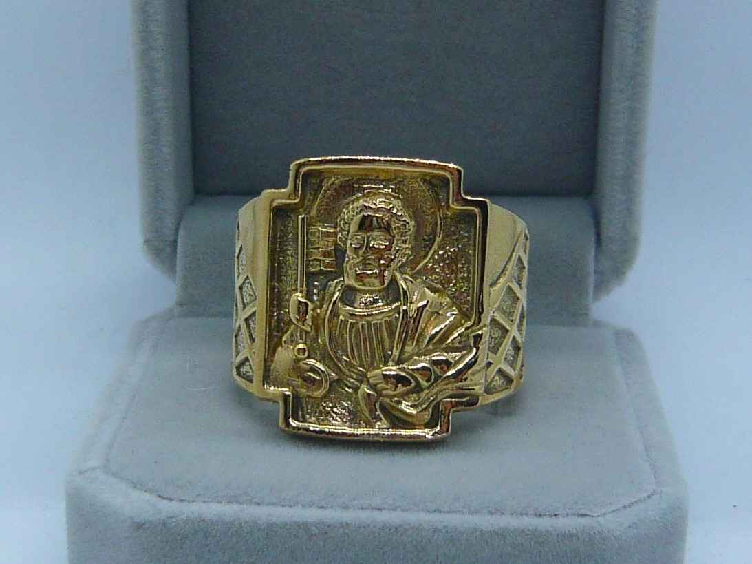 This is a beautiful Gold Plated Bishop's ring in 925 silver depicting St. Peter.The ring is handmade by a skilled craftsman.The ring measures 0.90 inches tall by 0.68 inches wide.It weighs 30 grams (1.05 oz).